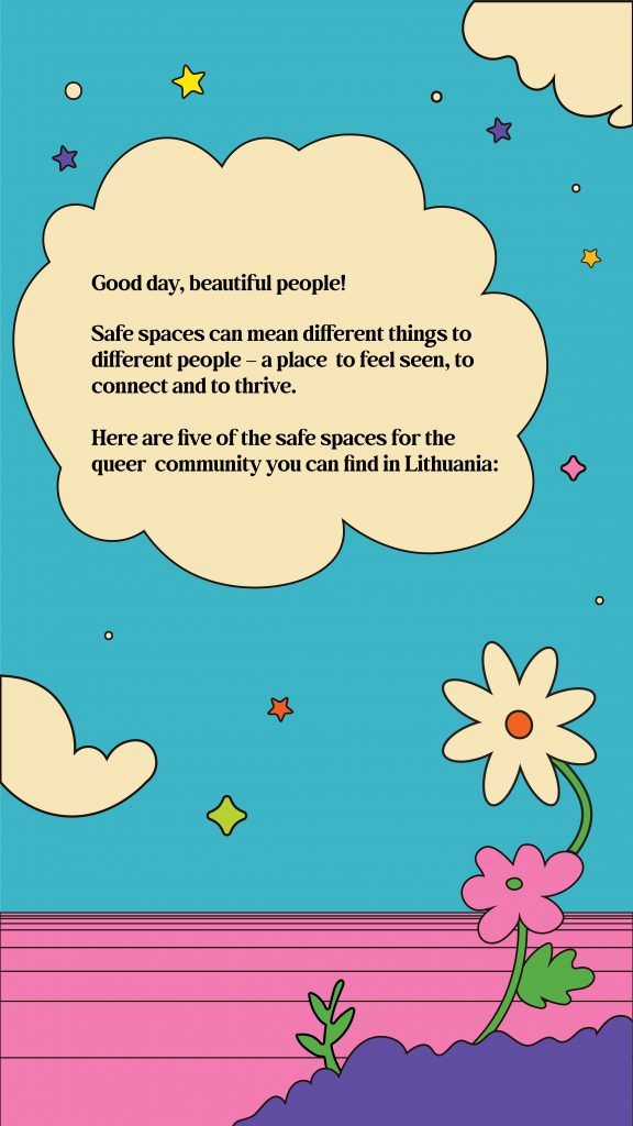 On June 6th we organized a discussion “From Pride House to Pride Home: The Importance of Queer Communities” where attendees were able to meet members of different queer communities in Lithuania, and hear their thoughts on community building. Our wonderful presenters shared insightful answers based on their experiences in their own queer communities, and our audience members joined in as well and shared a variety of queer spaces and collectives where they feel safe and accepted. We talked about how we can find people we feel comfortable with and how to make sure queer spaces stay safe and welcoming.
