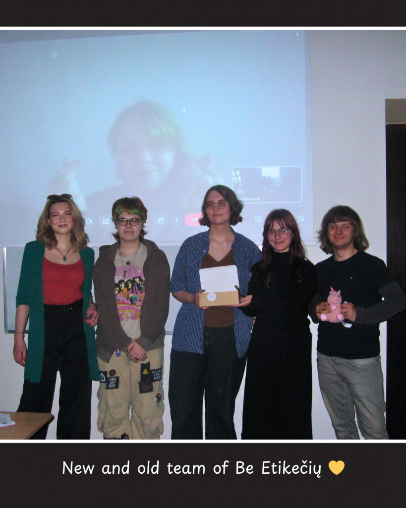 To mark the transition, the new team members shared a wholesome moment with their predecessors in front of the one and only “Be etikečių” window – to signify continuity and passing things on. Let’s wish the new team a year full of ideas, energy, and meaningful work! ![]()