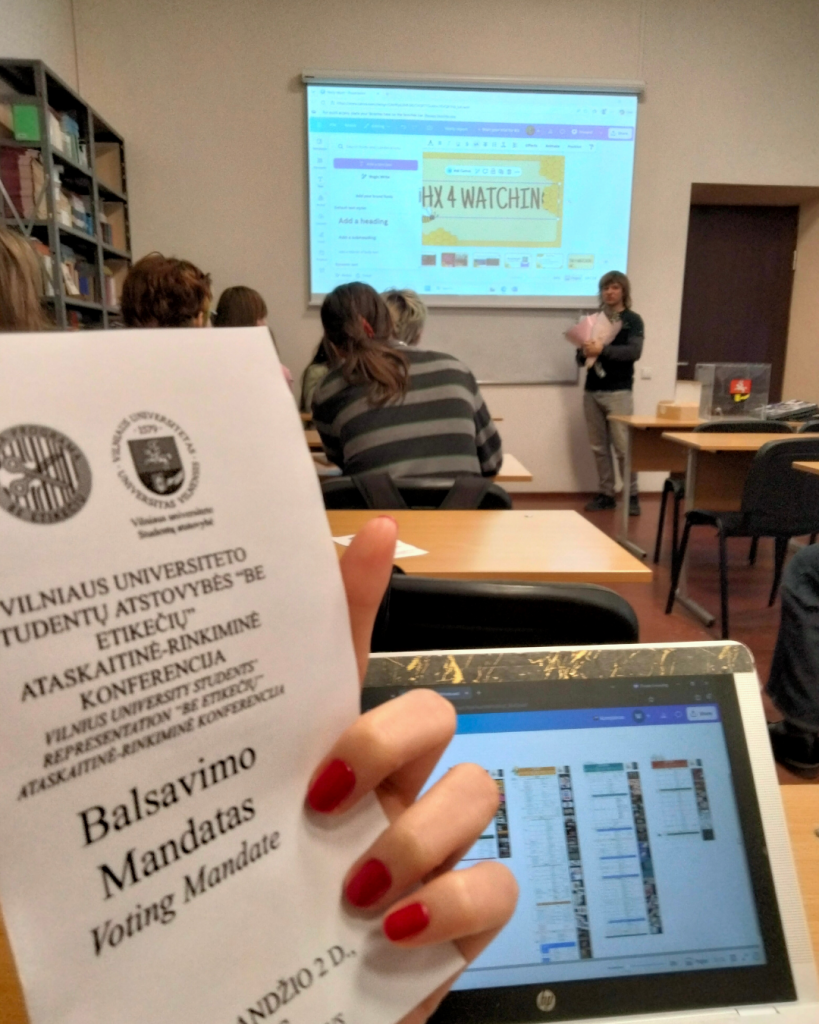 During the annual reporting-electing conference (ARK) on April 2nd, we elected our new leader Monika Muznikaitė, communications coordinator Neitanas Skersis, human resources coordinator Ugnė Jovaišaitė, and marketing coordinator Agnė Miknevičiūtė! ![]()